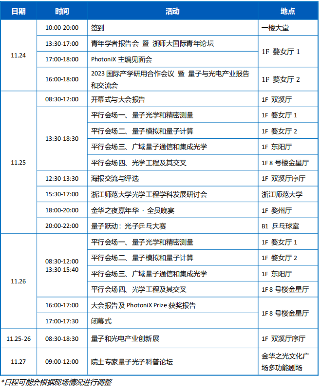 11月24-27日在浙江金華隆重舉辦“International Conference on Quantum Photonics (QPhotoniX 2023) ”。屆時(shí)全球量子信息領(lǐng)域?qū)W術(shù)界和產(chǎn)業(yè)界專家、學(xué)者、科研人員齊聚金華,圍繞量子計(jì)算、量子通信、量子精密測(cè)量和相關(guān)產(chǎn)業(yè)開展學(xué)術(shù)研討和應(yīng)用