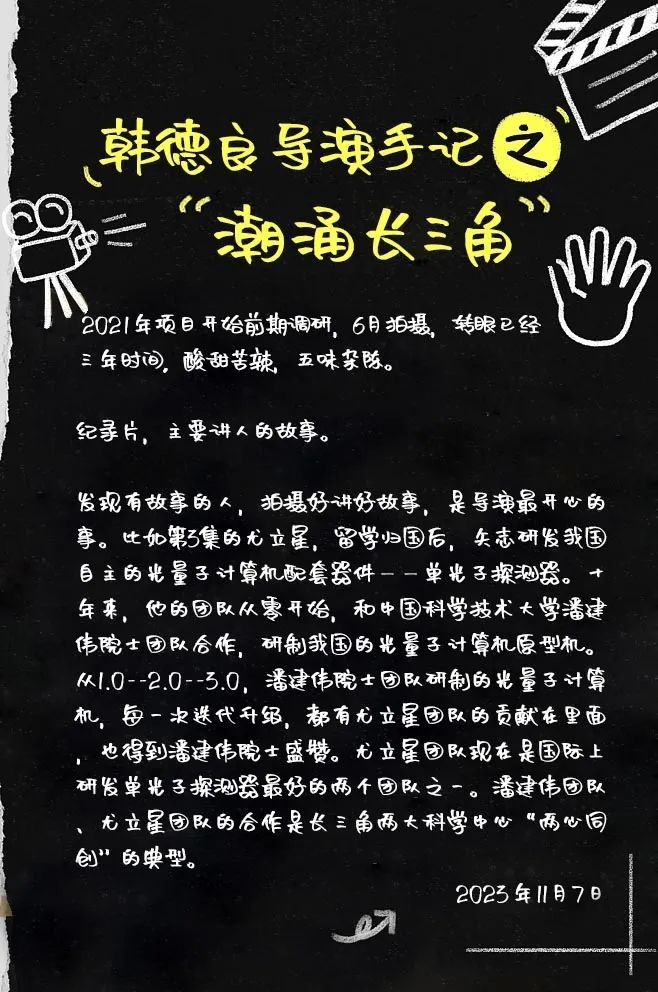 紀(jì)錄片《潮涌長三角》第三集《科創(chuàng)先鋒》將于2023年 11月22日晚9點(diǎn)50在安徽衛(wèi)視播出,上海廣播電視臺紀(jì)實(shí)人文頻道、江蘇廣電總臺新聞頻道、浙江廣電集團(tuán)、湖南金鷹紀(jì)實(shí)頻道等同步播出。