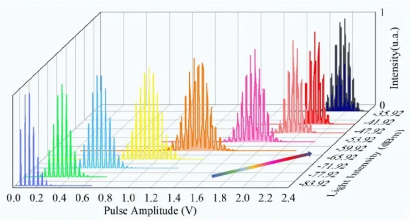 A:隨著探測器性能尤其是單光子探測效率接近100%探測極限,我們將進入到新的研究階段——光子數(shù)分辨探測。傳統(tǒng)探測器無法有效分辨光脈沖中的光子數(shù)目,而我們本次研究結(jié)果不僅能探測,還將光子分辨數(shù)目提升至61,這是一個很高的水平。還有一個重要方向就是通過更少的通道,比如單個通道便可以實現(xiàn)20甚至30個以上的光子數(shù)分辨。目前我們也已經(jīng)取得一些重要突破,希望近期就可以推向應(yīng)用。